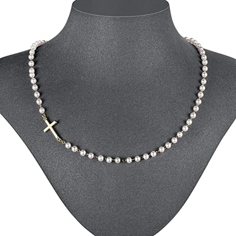 This pearl cross necklace combines genuine sterling silver construction with lustrous pearls and a graceful gold cross, creating a piece that honors both your style and your faith with lasting quality.